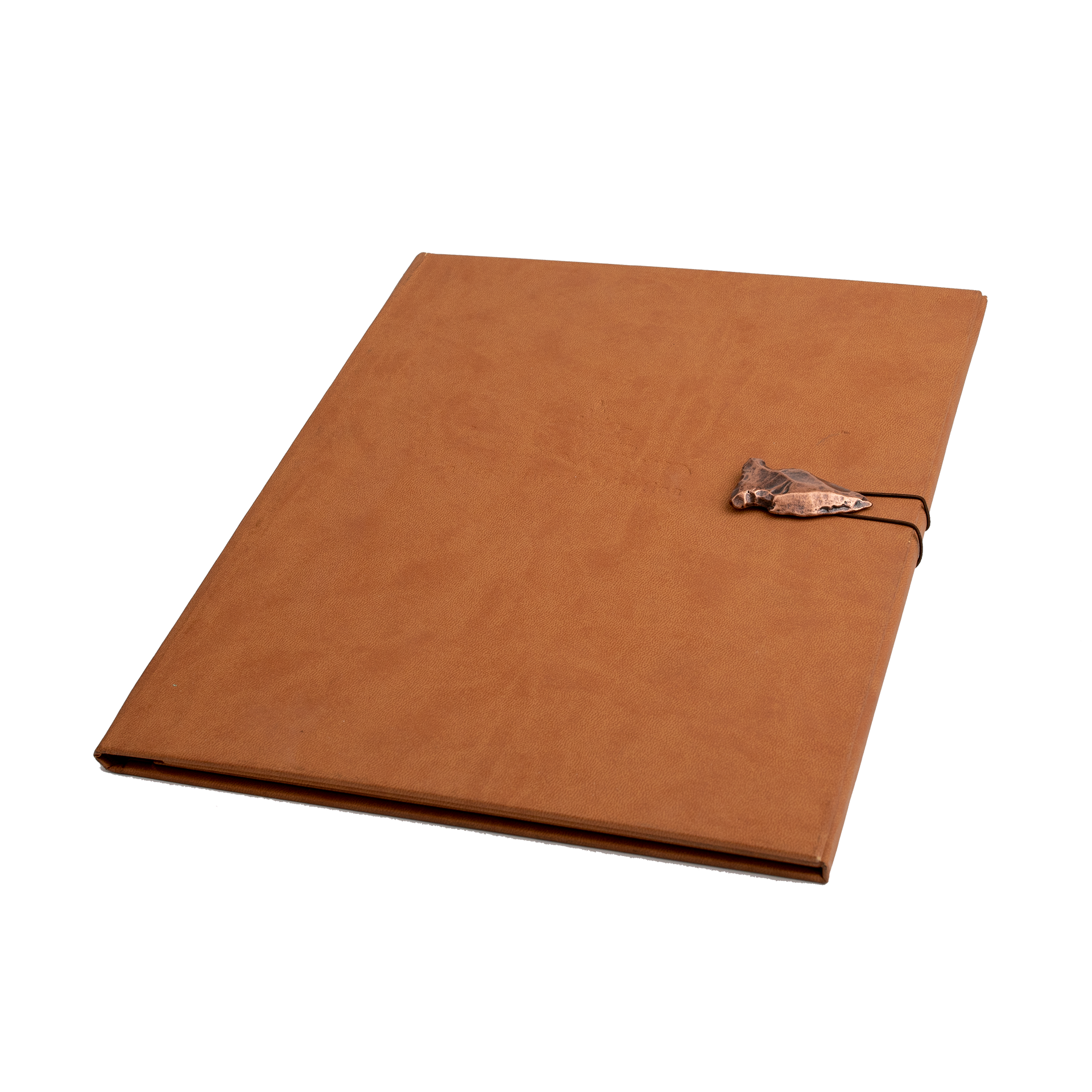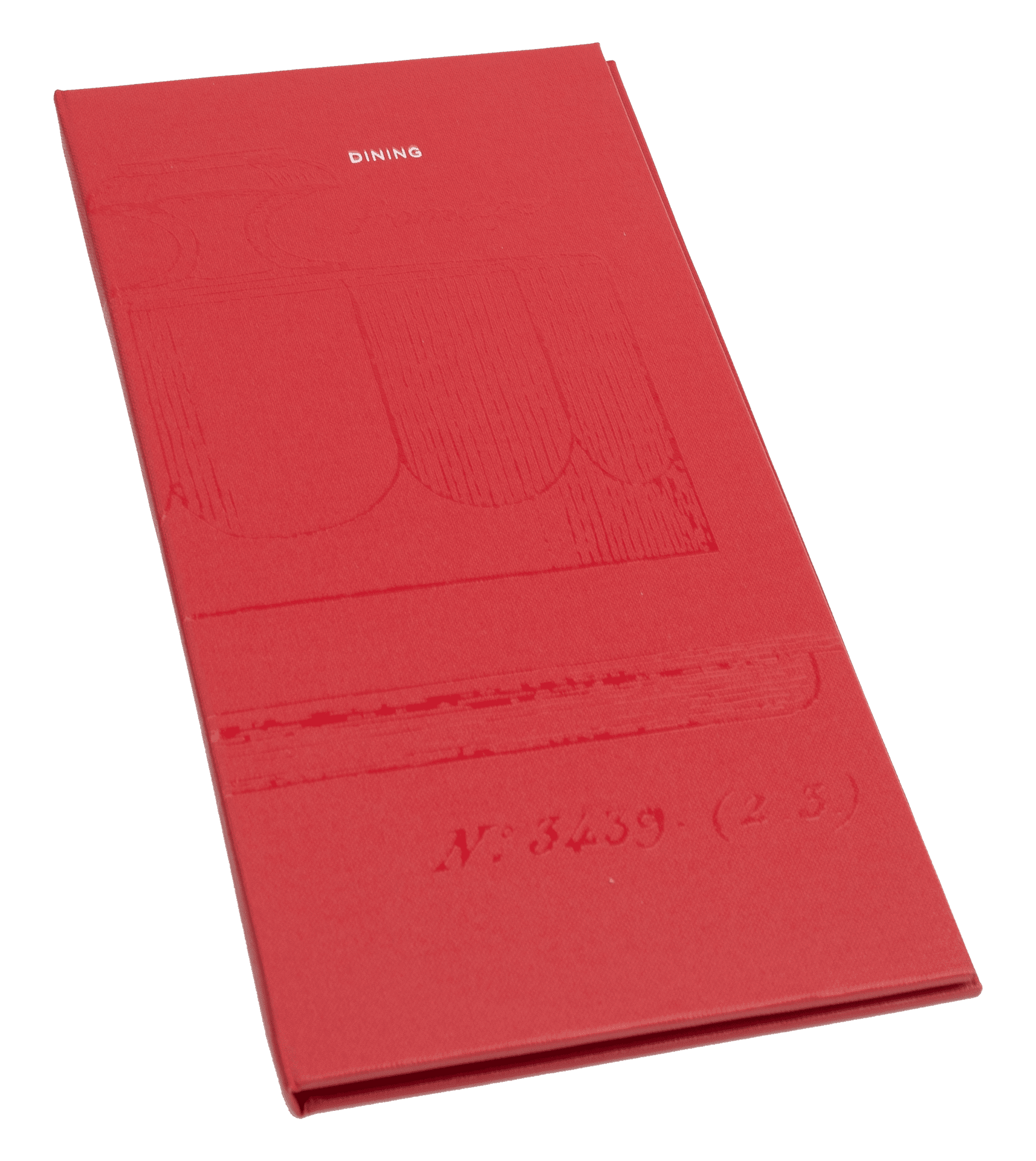 Turned edge book covers and Menus are a high-end, durable option that provides a clean, seamless finish. The covers are created by wrapping a piece of rigid board with a printed or plain paper or cloth material and then folding the edges over the board, creating a turned edge that is smooth and refined.